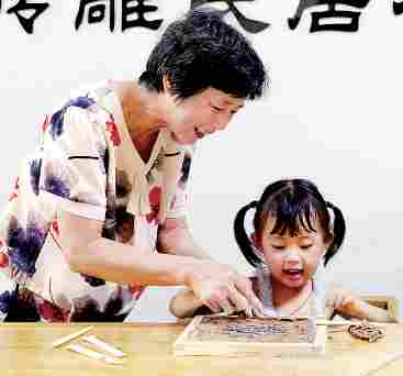 儿童在金华经济技术开发区寺平砖雕特色馆里体验砖雕制作。光明日报记者闫汇芳摄